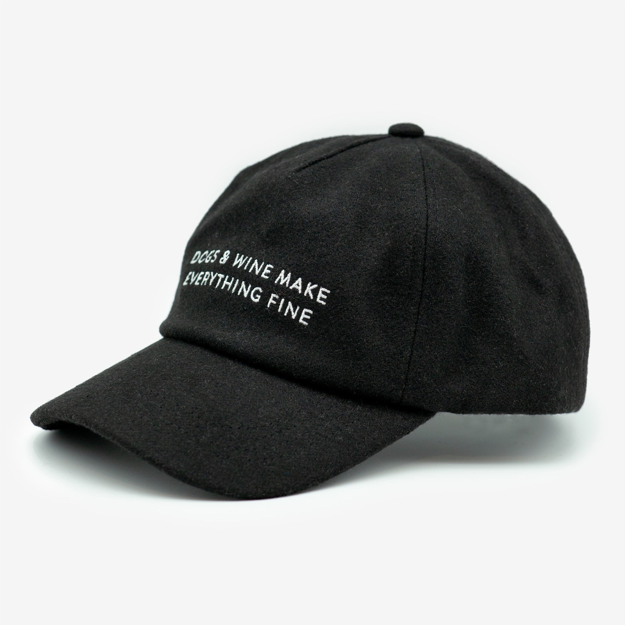 Black Wool Cap - Dogs & Wine Make Everything Fine