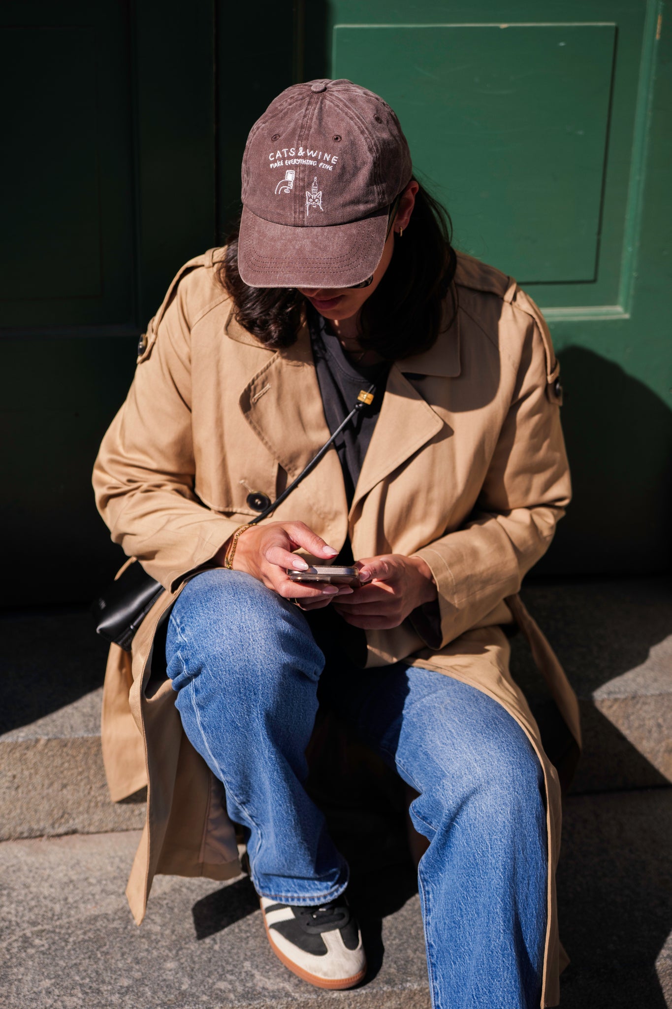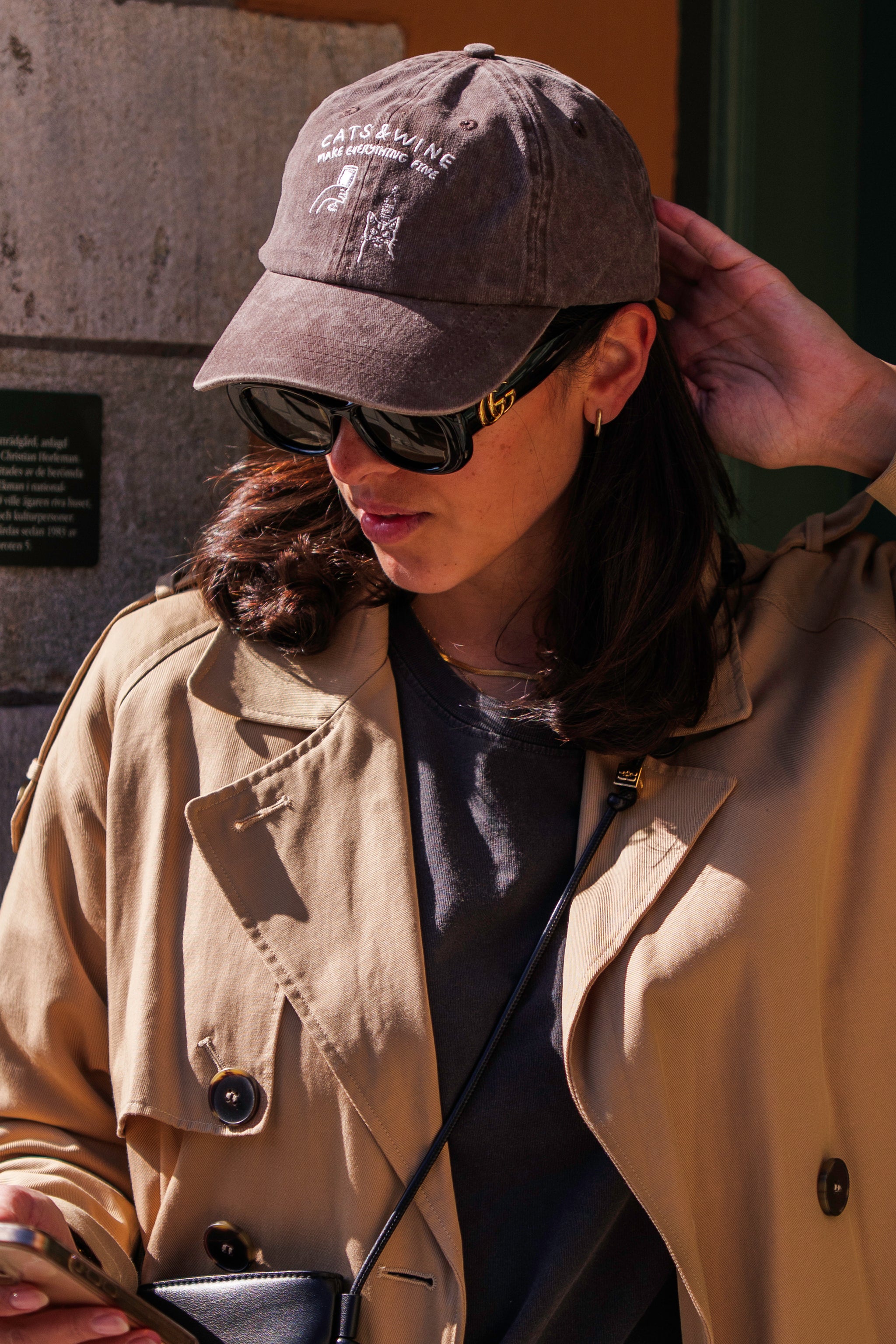 Brown Denim Cap - Logo "Cats & Wine Make Everything Fine"