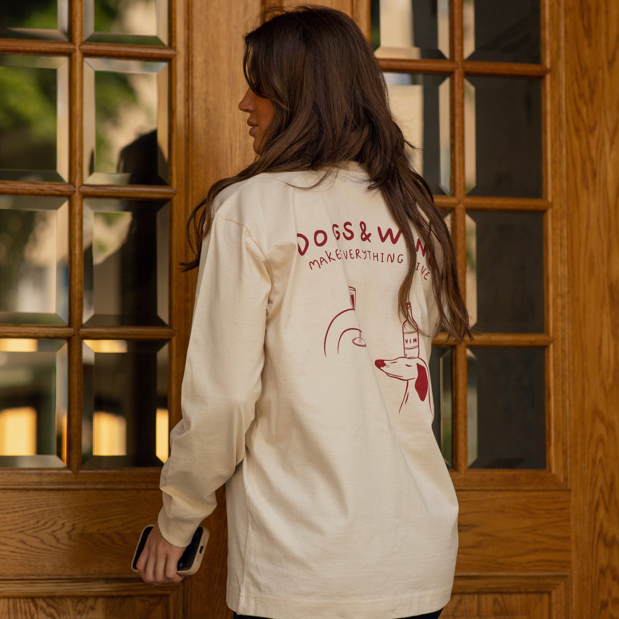Unleash your love for dogs (and wine) with our Off-White Long Sleeve T-shirt! Made with soft and comfy fabric, this shirt boasts a playful design that will surely make you stand out. Perfect for casual days and dog-wine dates with friends. Cheers to looking fine!